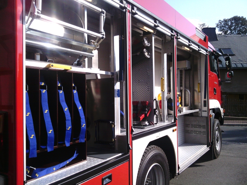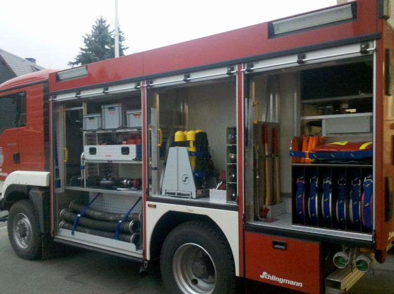Hier sind die Gerätefächer noch nicht alle fertig bestückt, doch der Nutzen des Fahrzeugs ist allein schon durch die große Wassermenge enorm.